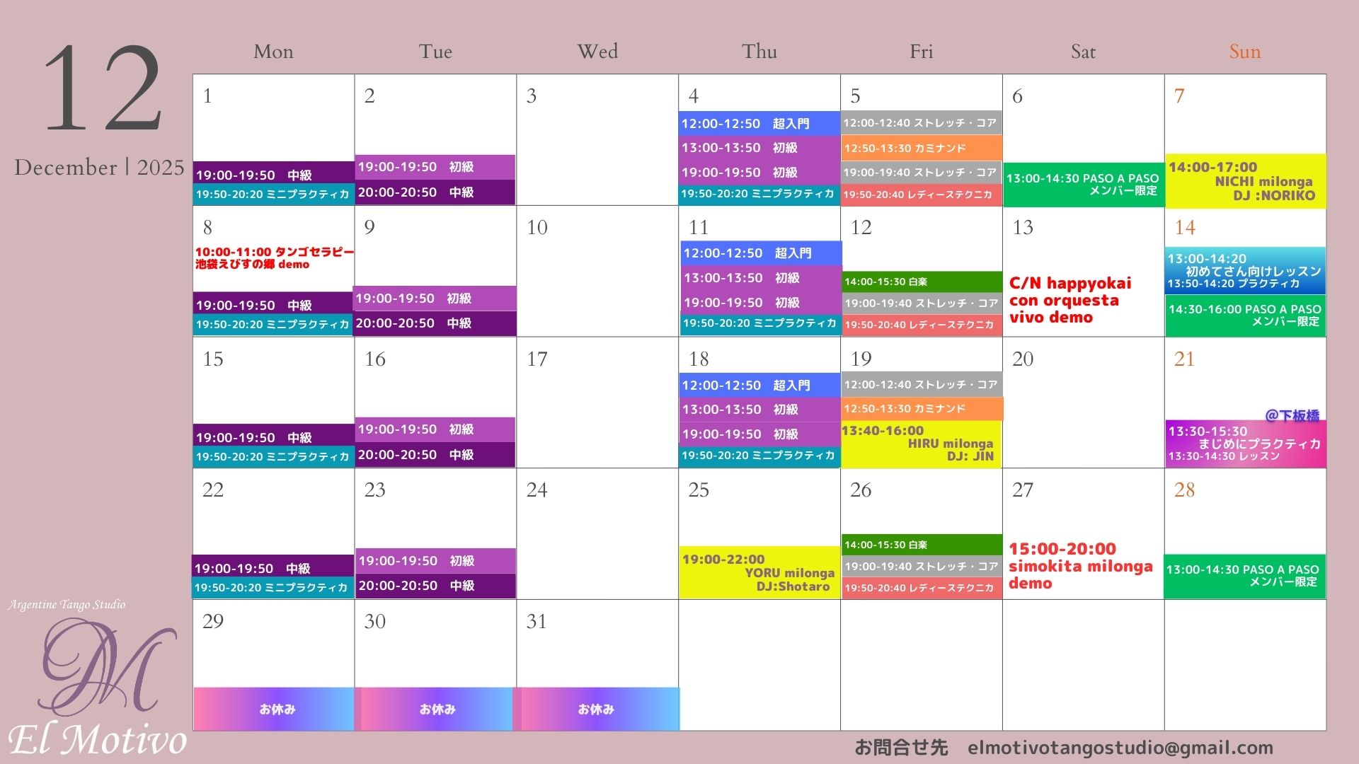 El Motivoのこれまでのスケジュール